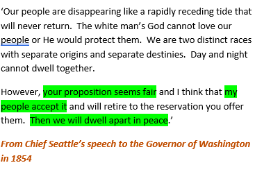 - That the Native Americans agreed to retire to live in reservations offered by the Governer of Washington in 1854.